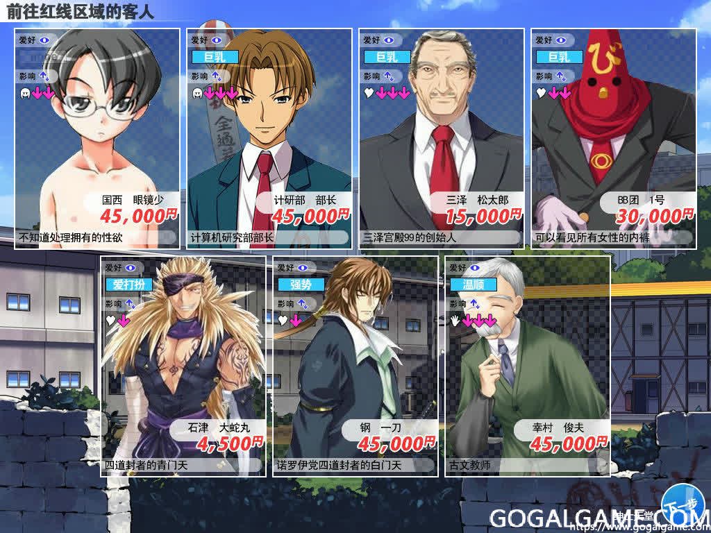 游戏一开始给玩家指派的3个女生很重要,如果素质不高请重新开始,至少得有一个是A+、B、B的等级。 在流程的初期请不要购买过多的指导备品,努力存钱,舶来の洋酒是第一购买目标。