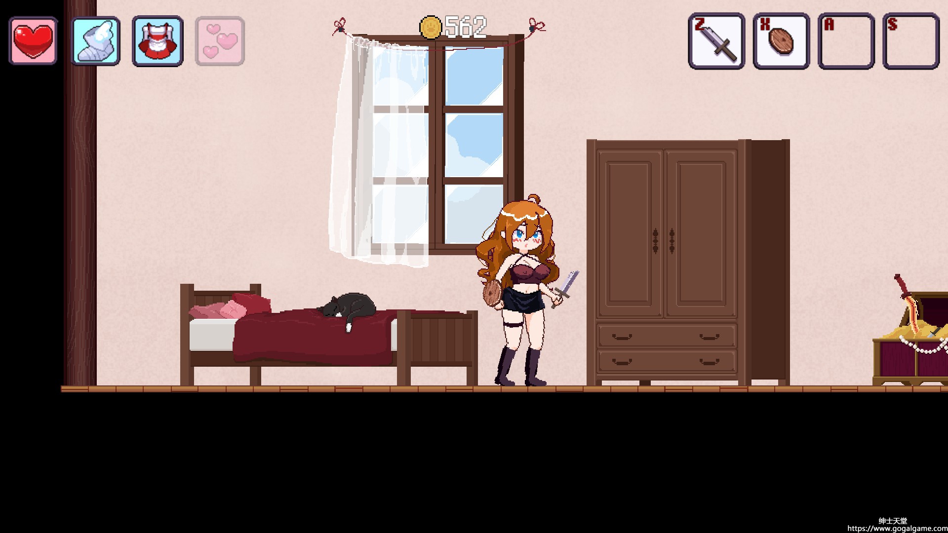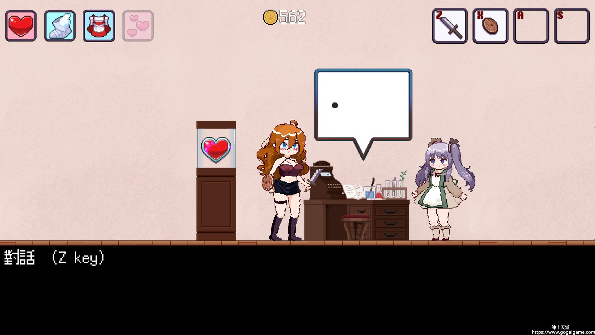 像素风 向往着成为冒险者的少女,在给自己各种加油打气后… 成功的被史莱姆狠狠的修理了一顿 最后被装备店的看板娘捡回去 于是二人遍达成了【你帮我打怪我帮你搞装备】的攻守同盟 但是…附近的魔物..却突然开始变得狂躁起来了…